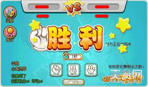 2.比赛面板打开后,选择想要出的拳,然后点击确定,就会弹出比赛结果。