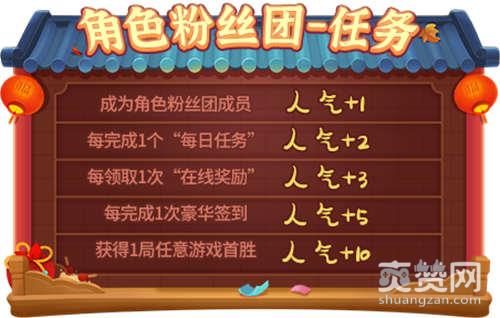 1. “角色粉丝团”任务每日重置,玩家已获得的“人气值”不清零;