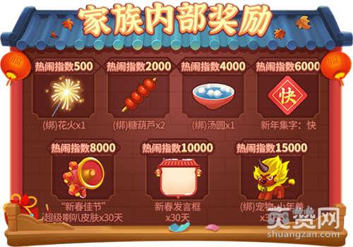 在活动结束后,”热闹指数”最高的前十名家族可为家族赢得奖励!并且获奖家族中至少获得100“热闹指数”的族员能立即获得1份对应奖励!