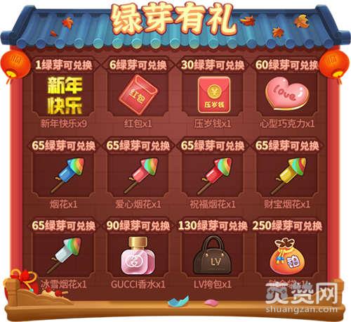 活动期间,使用绿芽兑换新年特别礼物吧!