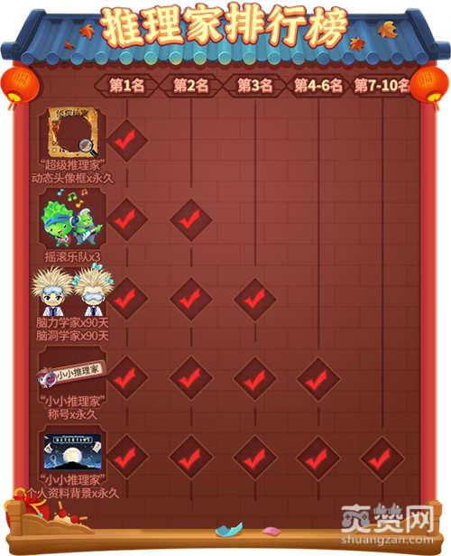 在活动结束后,为推理家排行榜上前10名玩家发放特别礼物!