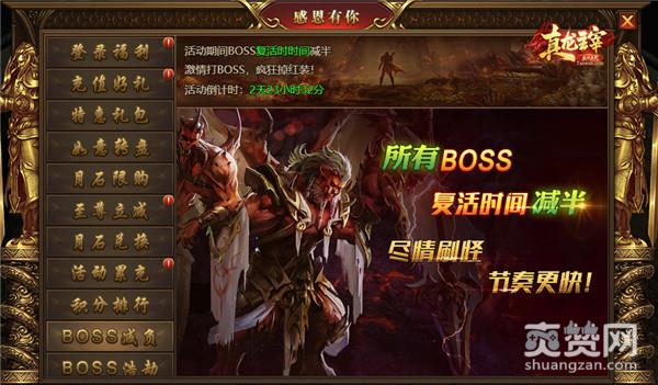 活动期间boss死亡复活时间减半,击杀1500级以上的boss和转生boss获得积分,活动结束后更加排行邮件发送奖励。