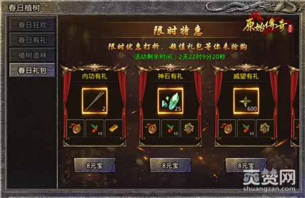 限时特惠打折,内功、神石、威望福利,只需8元宝即可获得!超值礼包等你来抢购!