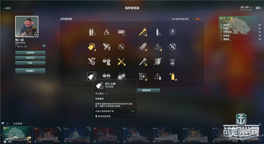 在新系统中,不仅大部分旧技能披上全新外衣,诸多新技能也华丽铺开,比如“死亡之眼”——若战列舰在标准被侦测距离内没有可见的敌舰,则降低主炮炮弹的偏差度,此技能若与「隐蔽专家」和「隐蔽系统修改型 1」共同搭配,将使效果更加显著。