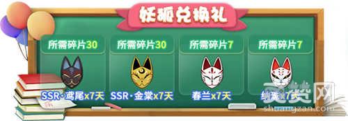 “妖狐碎片”可用于兑换妖狐奖励,这部分面具只能通过兑换获得: