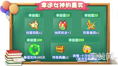 每花费100金币可购买1份功能道具:“妖狐先生”,并获得1点幸运值和1次抽奖机会!积攒“幸运值”,兑换“幸运女神的嘉奖”!