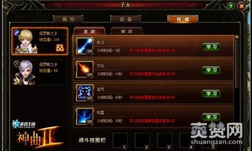 熊孩纸威力十足,正是因为他们有自己的爆发力。在《神曲2》中,宝贝7天成长期除了决定属性值,更是决定他的职业方向。例如想让孩子成为高贵的法师,就可以往智力方向的属性点发展。7天后,可爱的萝莉娃还是萌正太就会闪亮登场了。子女可以学习专精职业和通用职业两种类型的技能,领主们可以在“子女”系统中查看子女可以学习的技能和说明,从商城中购买对应的技能书,来让孩子们学习技能
