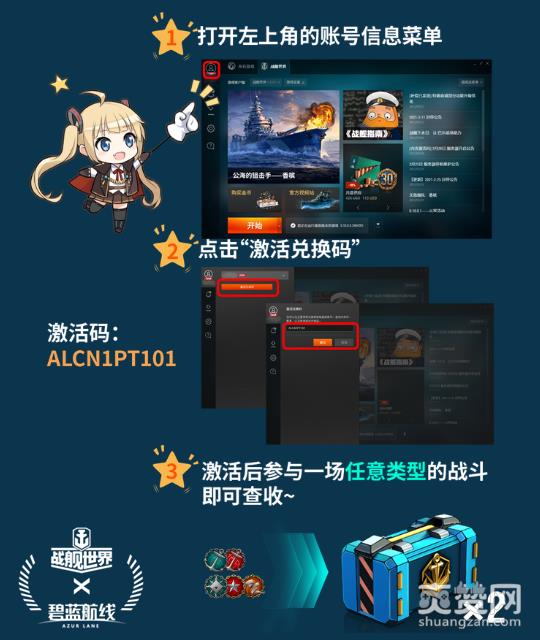 梦幻海战的诗篇已拉开序幕,少女们已准备了丰厚豪礼邀您启程!使用下图中的激活码,并下载/登录战游平台(游戏启动器)于页面进行兑换,即可获取您的第一份《碧蓝航线》联动礼物!
