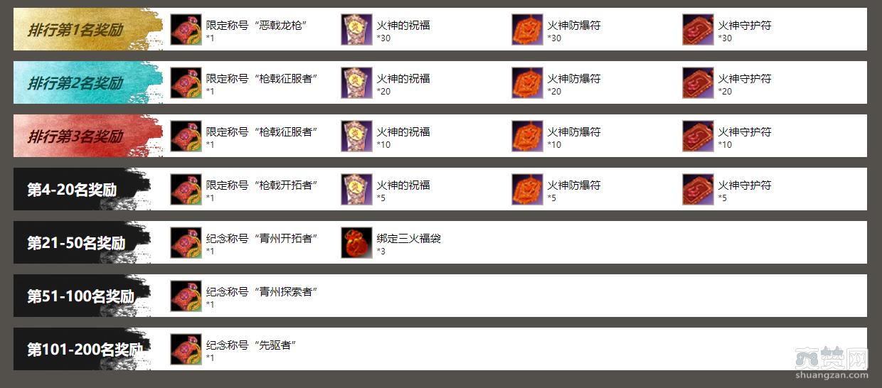 更新之后,活动页将新增冲级排名功能,前200名到达150级的玩家将会登上排行榜,两个区服同时统计,榜单会在每日的12:00刷新,玩家将依据排名获得限定称号:“恶戟龙枪”、“三火”等稀有道具。