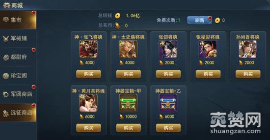 35级开放远征商城,远征商城中会出售武将碎片及宝物碎片,消耗布币可进行购买。点击商城中的刷新按钮,可刷新当前商品。系统每日将赠送3次免费刷新的次数,免费次数耗尽后再次进行刷新需消耗铜钱。