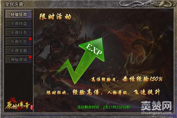 玩过原始传奇的玩家都知道升级的重要性,以及升级的难度,那这次的全民庆典活动之经验狂欢让你体验不一样的升级速度,大家听这个名字也能知道这是针对升级所出的活动呀!活动时间内杀怪经验提升百分之150,那还等什么呢?快来提升等级,提高战力呀!