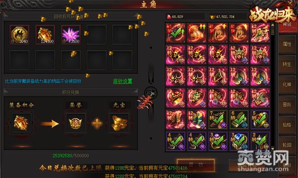 第二位要介绍的就是“郝掌柜”主要的作用是帮助小伙伴们消化背包中品质较低的装备以及合击符文、仙格,消化后小伙伴们可获得大量的装备积分以及符文碎片、仙格精华等材料,装备积分可在回收界面进行兑换游戏中的“荣誉”和“元宝”,而且荣誉可以在游戏当中的“荣誉商城”中购买游戏中的稀有道具。