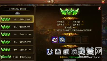 提升官职己方所有武将可获得属性加成,并且每日均可领取相应官职俸禄。提升官职需要消耗“战功”,可通过参与国战获得。官职越高,解锁的国战计谋越多,计谋等级越高,计谋可在国战内使用。特殊效果在国战内生效。每日获得战功会有上限,战功上限跟官职、月卡,有关。