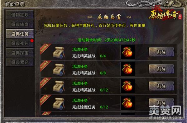 豪华的盛典悬赏任务,只需完成精英挑战和除魔任务即可完成庆典任务,而且完成庆典任务还有丰富的好礼,比如说百万金币,十万传奇币,各种稀有材料~,小编看着都直流口水啦!快来参加此次庆典任务吧!