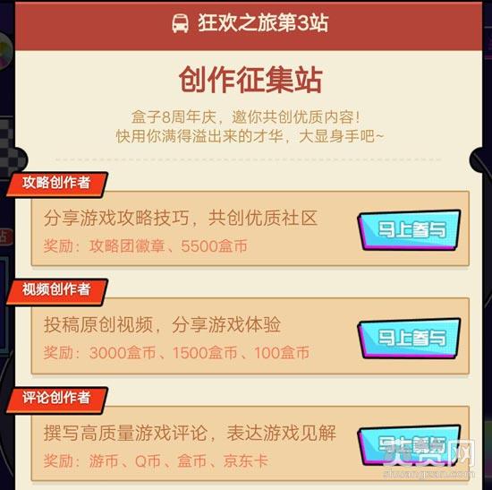8周年狂欢巴士途径8个站点,每个站点好玩有趣,尤其是第3站——创作征集站,你可分享游戏技巧、投稿游戏视频等大显身手一番;7月24日12点前到达第8站,更可赢取终极大奖——瓜分8亿盒币+抽锦鲤大奖!敲重点啦,接下来小编就将一一介绍此次8周年的活动了哦,快拿小本本记下来吧!
