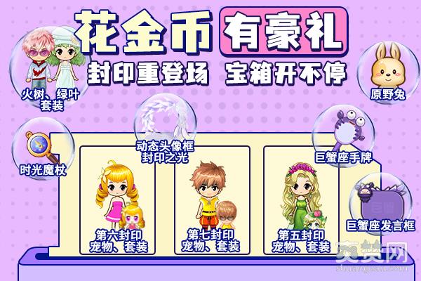 封印系列时装重制归来!第五封印、第六封印、第七封印头发部件已重新进行动态设计,在活动期间,每消费10000金币,即可开启封印宝箱,随机获得其中一份奖励!此外,花费的金币越多,在“金币消费榜”上的排名越高,可领取的奖励越多!活动结束后,为“金币消费榜”上前100名玩家发放奖励,包含:时光魔杖、火树套装、绿叶套装、原野兔等好礼!