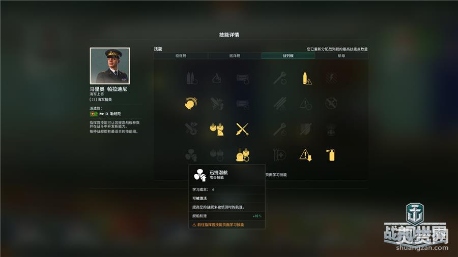 战列舰的“超重型穿甲弹”使主炮组穿甲弹的加成从5%上调至7.5%、灭火和进水恢复的时间惩罚已从30%下调至25%。而死亡之眼技能则被替换为“迅捷潜航”技能,后者将使您在未被发现时,提升战列舰航速10%,这为战列舰提供了更好的位移手段,而所有学习了死亡之眼技能的指挥官将获得一次免费重置技能的机会,快来重新配置您的舰船,让她们再次强大吧!