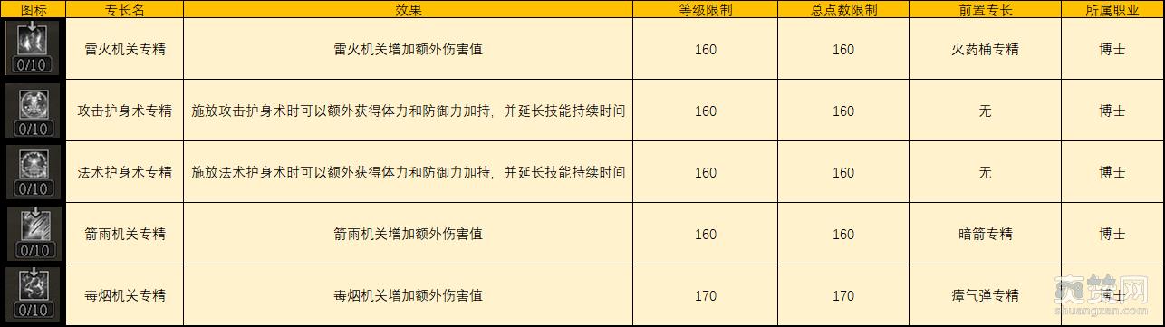 博士全新开放的专长【攻击护身术专精】和【法术护身术专精】有效地提升了博士的生存能力,可以在施放技能时获得额外的体力和防御力加持,并延长技能的持续时间。此外,【雷火机关专精】、【箭雨机关专精】和【毒烟机关专精】等专长则更加贴合了博士“机关大师”这一形象,在方寸机关之间,杀人于无形之中。