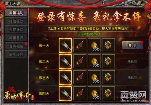 周年庆典期间,玩家只需要登录并且签到,就能获得相应的丰厚奖励,活动持续七天,保持每天签到,签到奖励包括:传奇币(绑)、队伍召集令、超级藏宝图、血脉精华、10倍经验卷轴(绑)、幸运石以及周年庆称号。周年庆称号仅周年庆典活动期间可获得,如果错过了这次,就只能等下一次的周年庆典了哦!