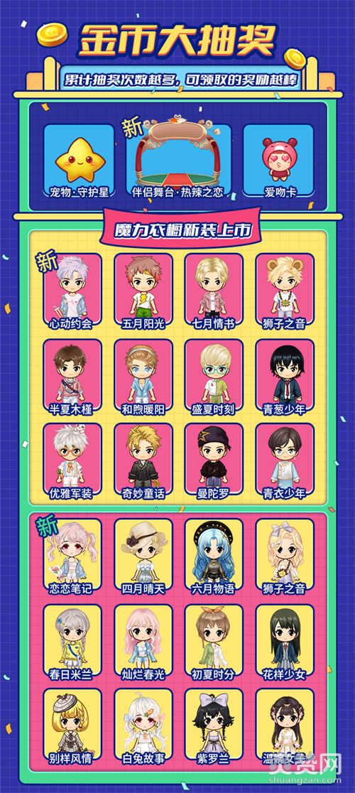 活动期间,每花费200金币即可抽奖1次,根据您的抽奖次数,还能获得额外奖励!“魔力衣橱”再次登场,全新动态套装:心动约会、恋恋笔记等着你哦!
