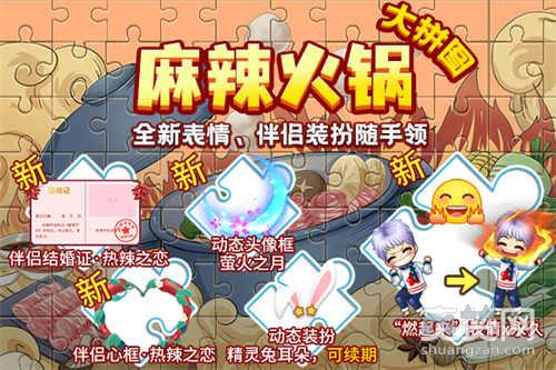 活动期间,将任意讨好、整蛊道具换成“食材”,每花费388食材即可制作一份讨好道具:麻辣火锅!被使用后全房间内的玩家可平摊1200游戏积分。