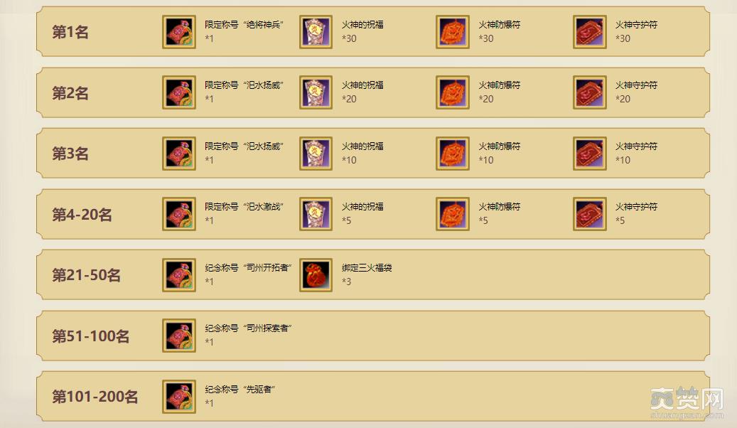 双服开启后,活动页面将同步上线冲级排名奖励活动,活动时间结束后,所有在冲级排行榜上的玩家们都可以获得特殊称号以及“三火”等道具奖励。排名二、三名的玩家可获得限定称号“汜水扬威”,排名第一的玩家还将获得版本限定称号【绝将神兵】!开服冲刺,名列金榜,成就非凡!