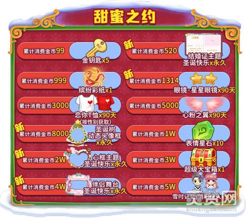 6、“甜蜜之约”自定义套装奖励需双方累计消费金币数量,至少达到10w才可获得;