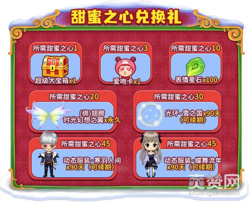 奖励二:当累计消费50000金币后,双方每额外累计消费10000金币,即可分别获赠1颗“甜蜜之心”,使用“甜蜜之心”可在活动中兑换特别奖励!