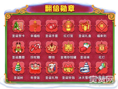 每局累计获得5份奖励:额外随机赠送一份:圣诞礼物、舞狮、爱吻卡