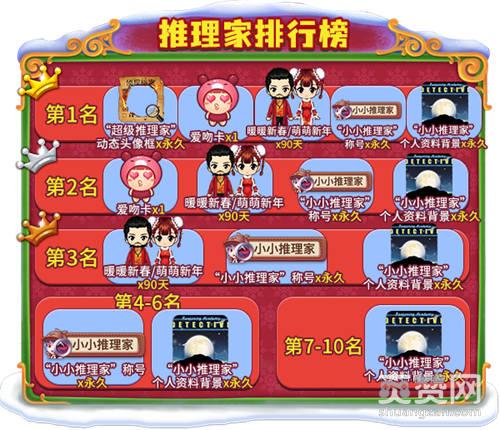 在活动结束后,为推理家排行榜上前10名玩家发放特别礼物!