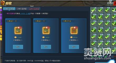 右下角回收功能按钮进入,回收多余装备不仅可获的元宝、也可以转换经验!元宝回收每日有回收上限,角色升级,开通收益特权均可提升上限。角色经验则无限制!角色达到三转以后,回收开放珍品装备购买,消耗元宝可购买珍品装备!