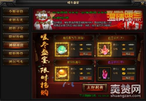 活动说明:活动期间,神秘商店再度开启,稀有材料超低价出售,不容错过!商店物品每2小时自动刷新,消耗一定元宝可立即刷新,刷新后每样物品限购一次。