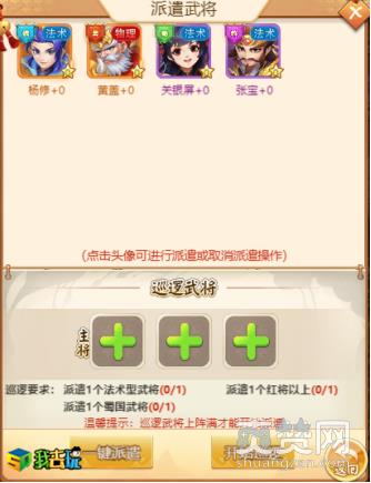巡逻之前,需要从待派遣的武将中选择执行任务的人。玩家既可以根据巡逻要求手动选择武将,也可以点击“一键派遣”让系统自动筛选出符合条件的角色。相对来说,后者更便利些,但在自己的武将里没有符合条件的人选时,这种方法也会出现错误,这时就需要玩家用手动的方式重新选择武将。