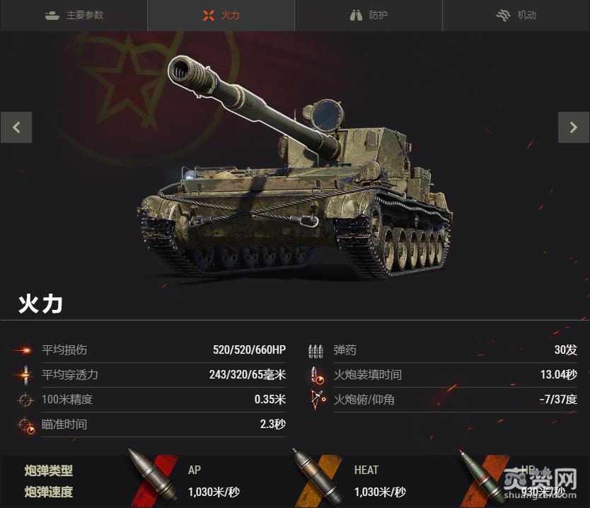 其中,来自S系的8级自行反坦克炮SU-130PM是一名身手敏捷的机动狙击手;如果您具备缜密的头脑和出色的意识,善于选出良好位置并懂得适时移动,那么SU-130PM将成为您手中的制胜利器,其标准AP弹和特殊HEAT弹的平均单发损伤为520点,而HE炮弹的平均单发损伤则为660点。同时,其AP弹的装甲穿透力为243毫米,而特殊HEAT弹的装甲穿透力则为320毫米!