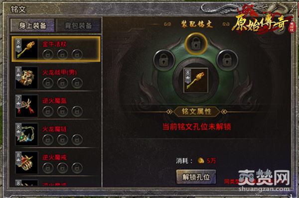2.单件装备每打开一个铭文槽位,所需材料的代价都会变大,开启第一个槽位所消耗的材料为5万传奇币,第二个槽位为1个打孔石,开启第三个槽位则要3个打孔石。