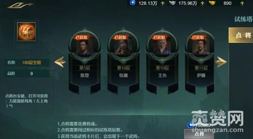 大家最关心的一定是试炼塔中的名将,闯过一定的试炼塔层数,就可以根据对应的层数得到名将,当然得到他们也是需要足够的将魂才能点出来哦,获取名将并非易事,但是得到这些武将,一定会使你的武将阵容更加强大,当然试炼塔不但只有武将还会有战功跟将魂,将魂可以用来点将,也可以用来开宝箱,宝箱里面有着丰富的奖励,心动不如行动,各位主公们,一起来闯塔吧!