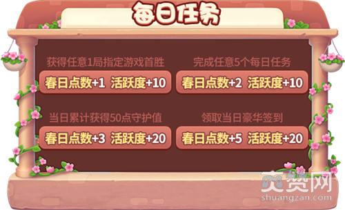 活动期间,新增每日额外任务,每完成一项任务,即可获得“春日点数”和活跃度奖励!