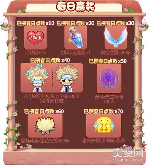 累计积攒“春日点数”越多,可领取的奖励越多: