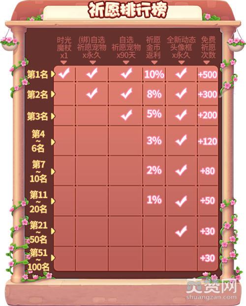 3、“免费祈愿”不计入“神树的贺礼”与“祈愿排行榜”统计。