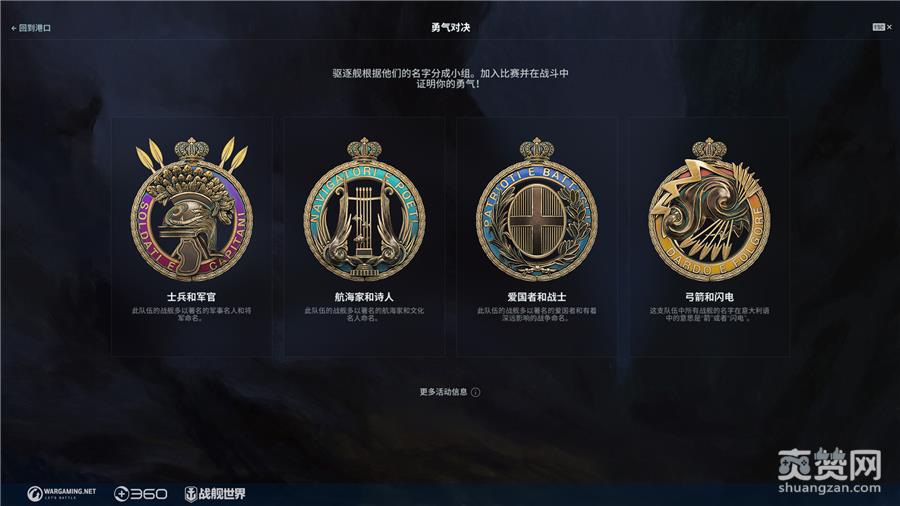 在I系驱逐舰到来的同时,属于他们的荣誉之战“勇气对决”也将随之开启。为了选拔出最成功的团队,I系驱逐舰讲组成四支不同的团队展开角逐。在3月24日至4月21日期间,所有指挥官可以选择任意一只团队并以盟友的身份加入。请记住他们的名字——士兵和军官、航海家和诗人、爱国者和战士、弓箭和闪电,每支团队都有自己独特的团队臂章,而最终的奖励是带有六个技能点的I系特殊指挥官。