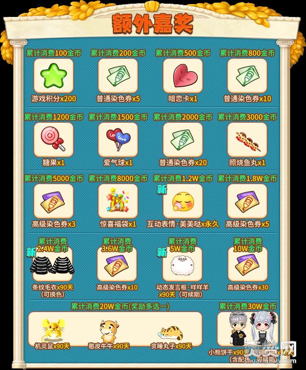 活动期间,消费金币,领取大礼!根据您消费的金币数量,可领取特别奖励。