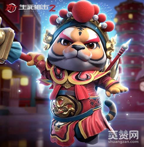 头戴紫金冠身披戎服靠,插靠旗摆姿势,英气可爱的老虎手持点赞大刀,还能发射元宝武器,既喜庆又威风!