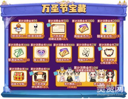 活动期间,玩家消费金币累计达到相应数量后,则可领取“万圣节宝藏”!