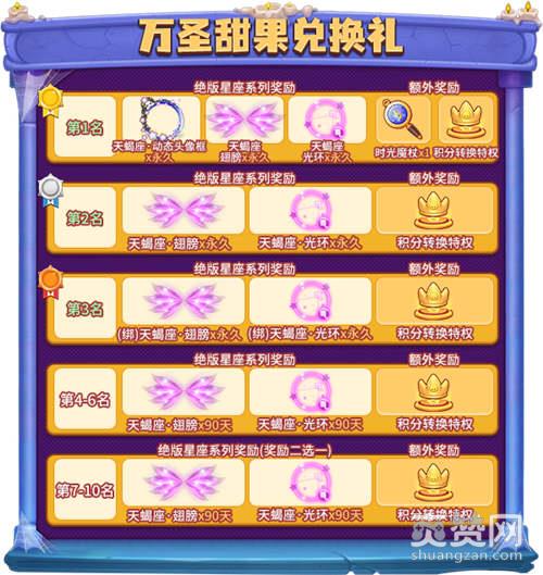 奖励二:当累计消费10万金币后,每额外累计消费1000金币,可获赠1颗“万圣甜果”,使用“万圣甜果”可在活动中兑换特别奖励!