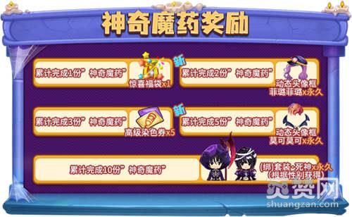 累计完成10份“神奇魔药”后,每额外完成一份”神奇魔药”,可获得“惊喜福袋x1”作为奖励!