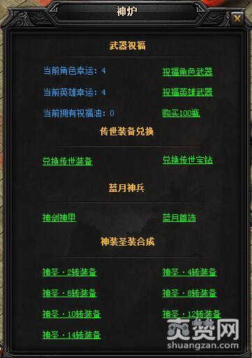 在地图中央,我们会看到一个大神炉。点开之后会发现其中的神装圣装合成追加了六大项。分别是神圣·2转装备、神圣·4转装备、神圣·6转装备、神圣·8转装备、神圣·10转装备以及神圣·12转装备。