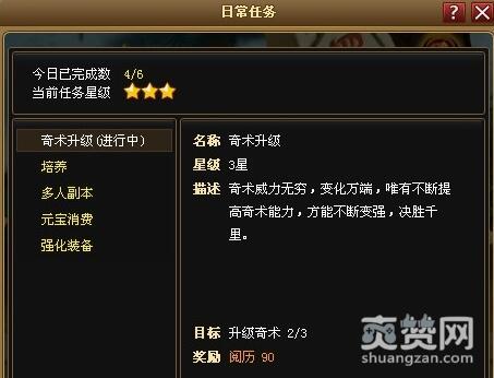 3)升级奇术:做奇术升级的日常,要尽量升奇术低的,这样能缩短很多时间。