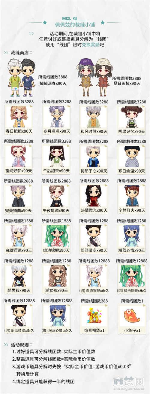 活动期间,在裁缝小铺中将任意讨好或整蛊道具分解为“线团”,使用“线团”限时兑换奖励吧!