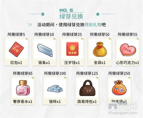 活动期间,使用绿芽兑换特别礼物吧!