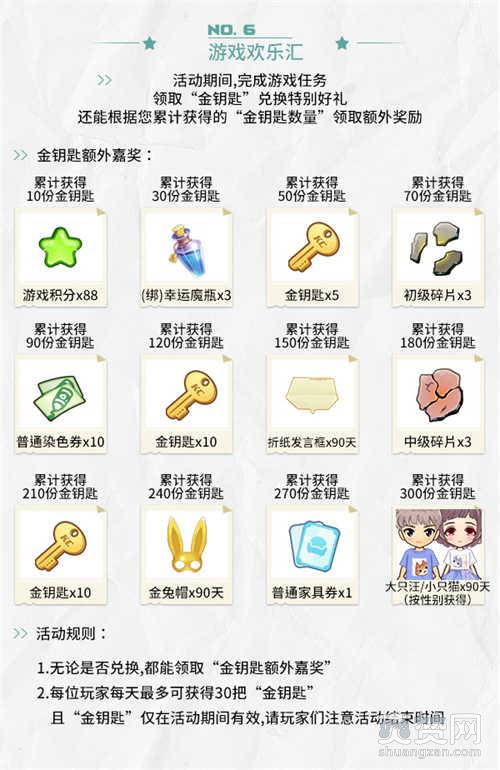 活动期间,完成游戏任务,领取“金钥匙”兑换特别好礼,还能根据您累计获得的“金钥匙数量,领取额外奖励!
